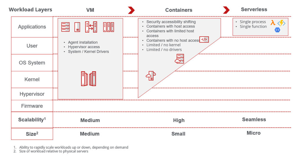 Workloads in modern environments have evolved to include physical servers, virtual machines (VMs), containers, and serverless workloads.